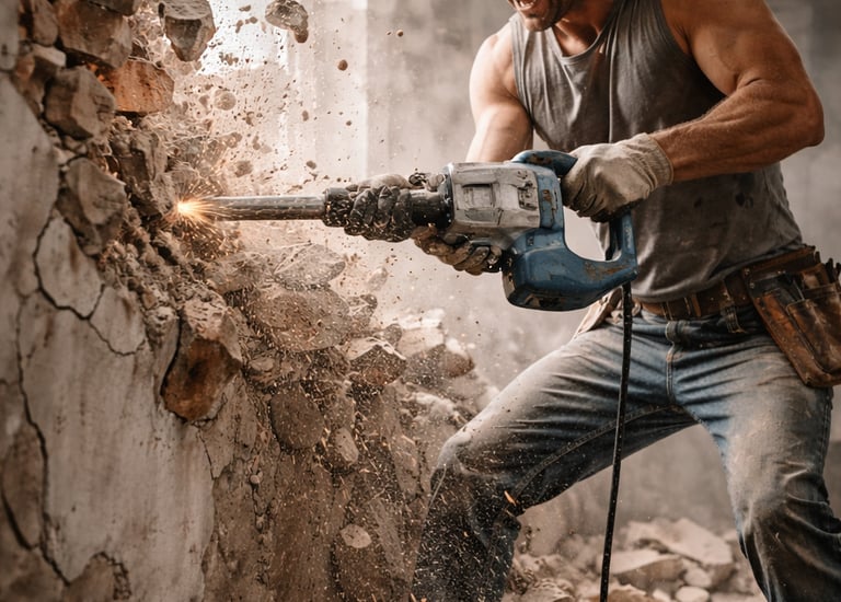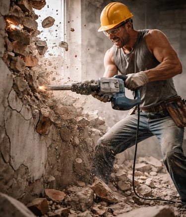 Professionele mechanische en manuele afbraakwerken voor binnen- en buitenprojecten.